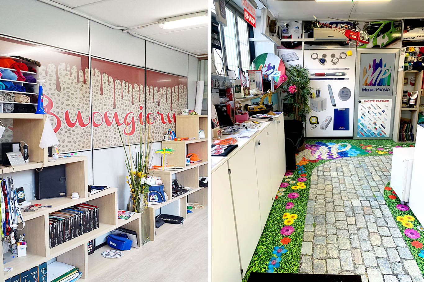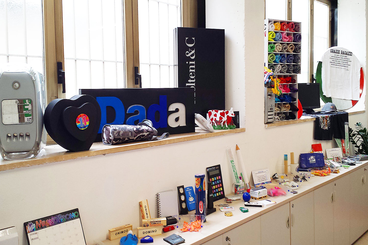 A differenza però di molte agenzie del settore, noi produciamo, stampiamo, decoriamo e ricamiamo.